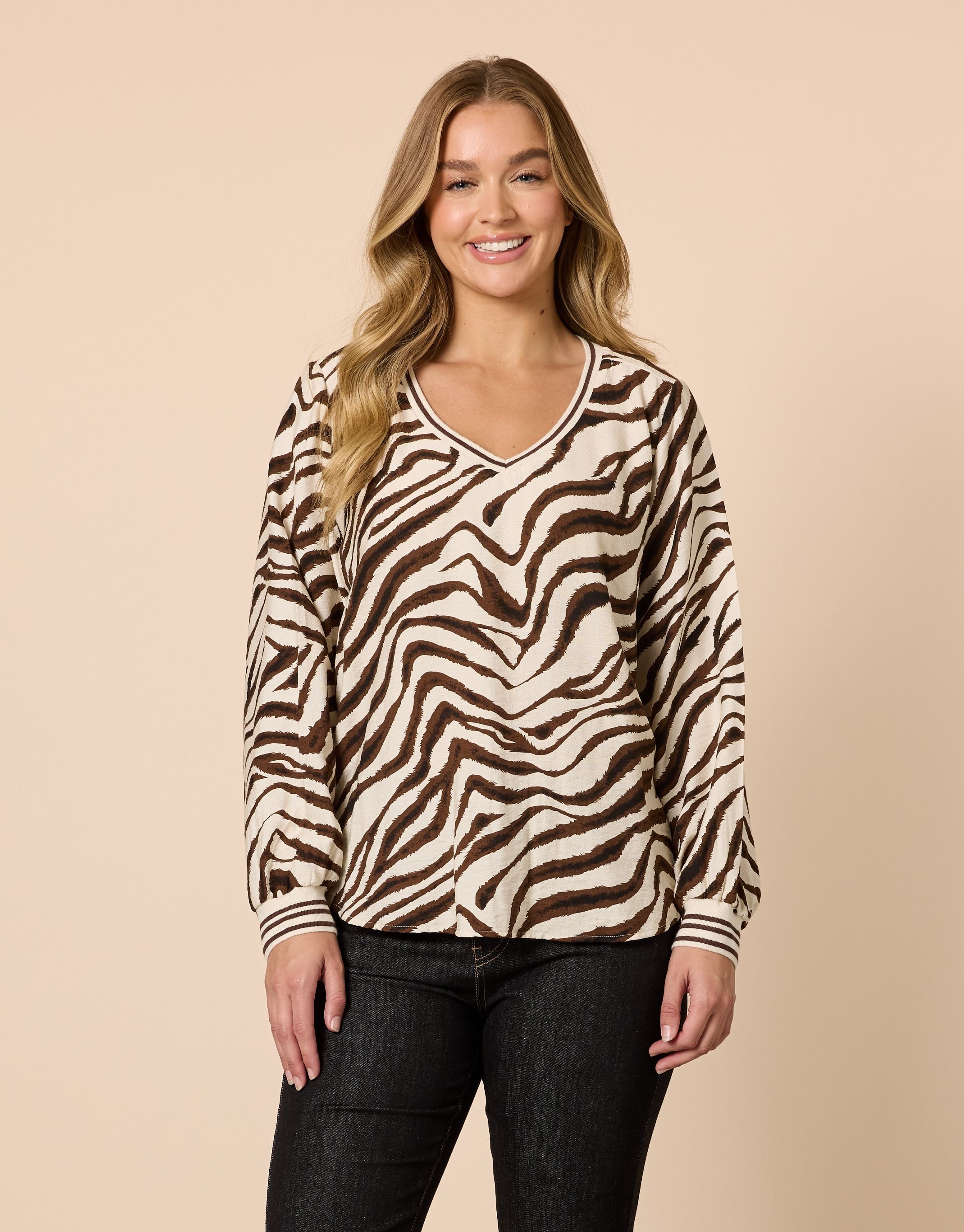 A bold yet refined top featuring a striking print and soft drape. Designed for comfort while adding visual interest to your wardrobe.