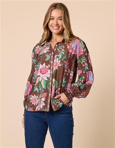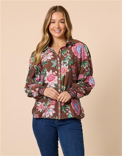THREADZ CHOCOLATE MULTI BOUQUET SHIRT