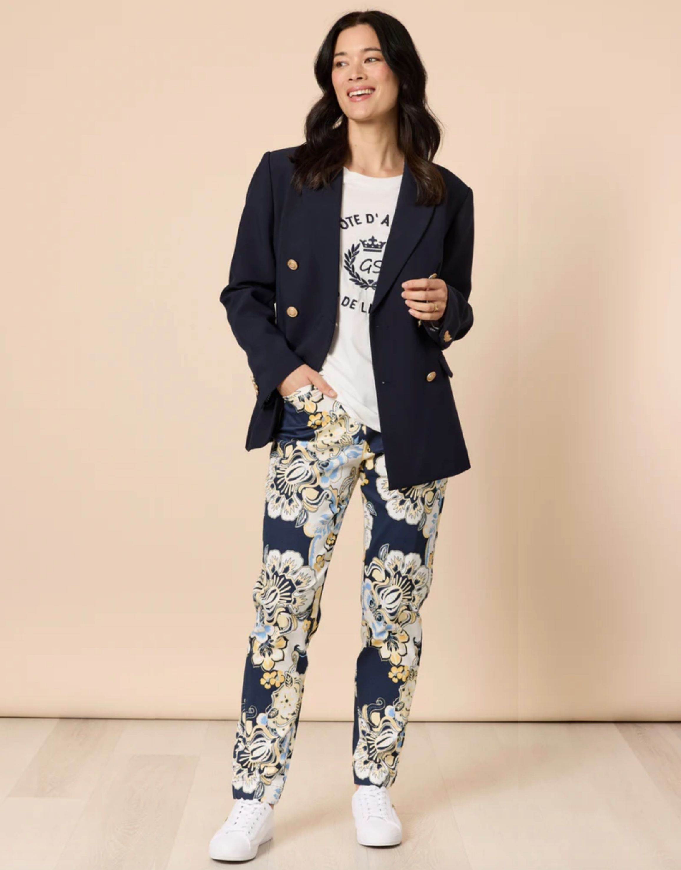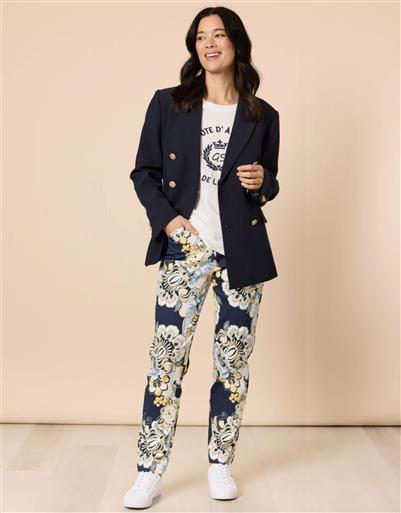 A statement pant featuring an feminine floral print , offering a bold yet refined aesthetic. The straight leg silhouette creates a clean and modern finish while maintaining everyday comfort.