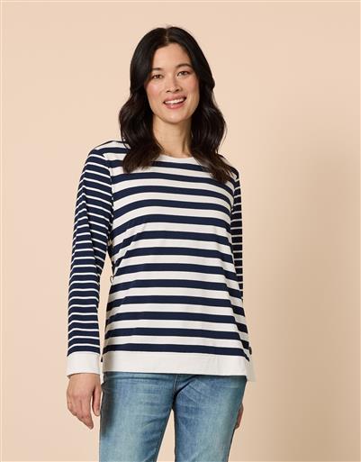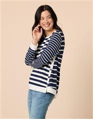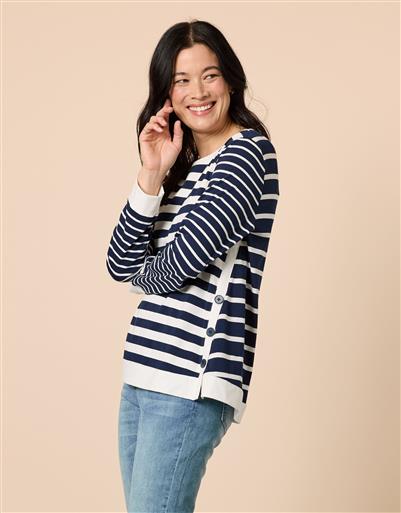 A classic crew neck striped top with button detailing on the sides.The timeless style and sophisticated finish makes this top the perfect fit for everyday wear.