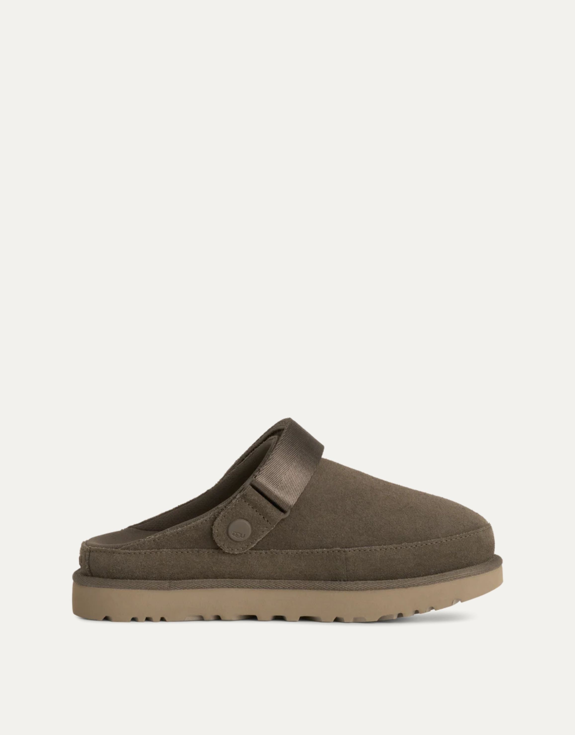 A refined slip on silhouette designed with a structured suede upper and supportive sole. The adjustable back strap introduces versatility, allowing it to be worn securely or as an easy slide.