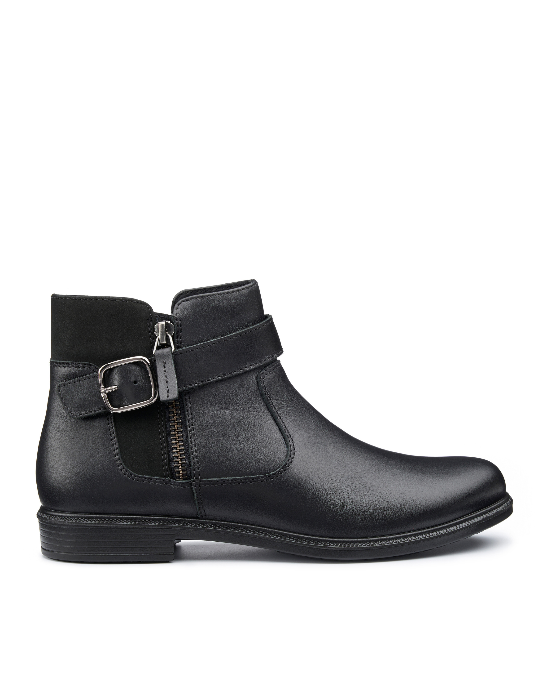 A sleek ankle boot designed with a streamlined silhouette and refined detailing. The lace up front provides a secure fit, complemented by a stable sole for everyday wear.