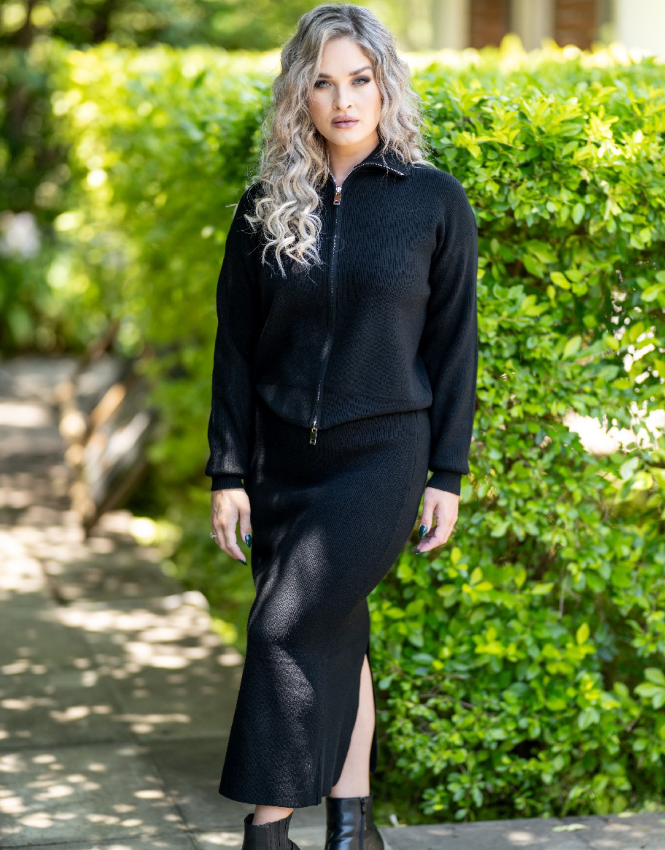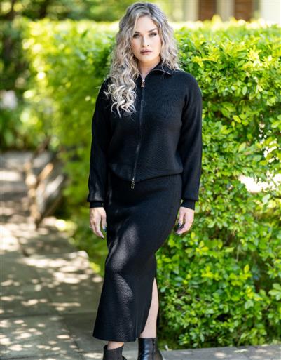 A sleek co ord set designed for a contemporary, minimal look. The structured knit and streamlined silhouette offer both comfort and style.