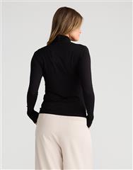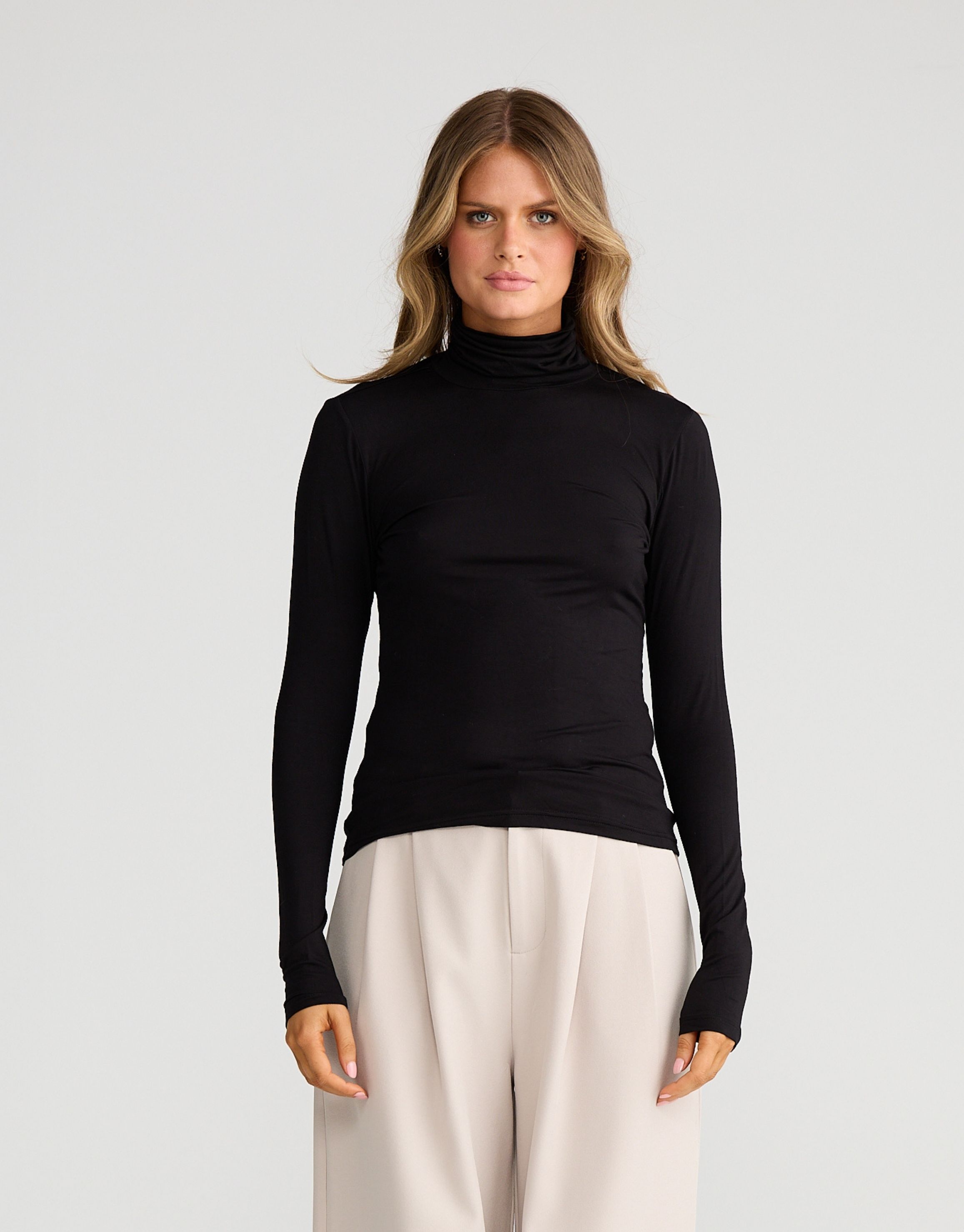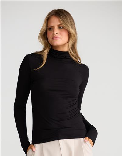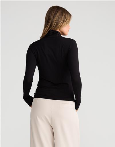 A refined long sleeve top in a sleek black colour, offering a flattering and comfortable fit.