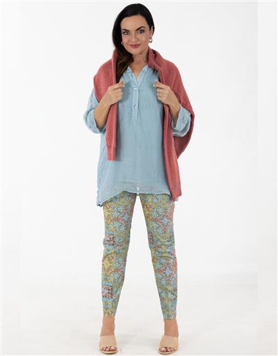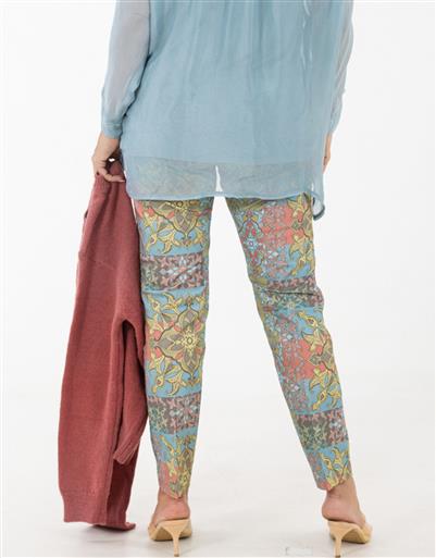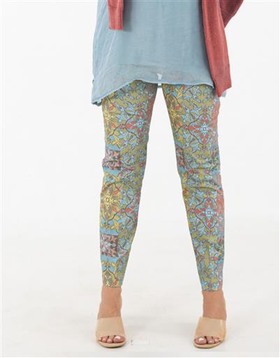 A refined pair of trousers featuring an intricate tile-inspired print in soft, balanced tones. The slim silhouette offers a flattering shape while maintaining comfort through gentle stretch. Designed for effortless wear, this piece brings a polished yet expressive feel to everyday dressing.