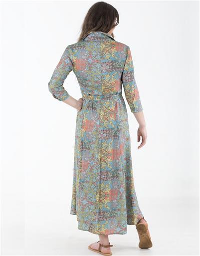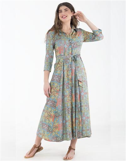 An elegant shirt dress designed with a timeless ornamental pattern for a sophisticated finish. The button-through front and adjustable waist tie create a flattering and versatile shape. Crafted for comfort and style, it transitions seamlessly from day to evening wear.