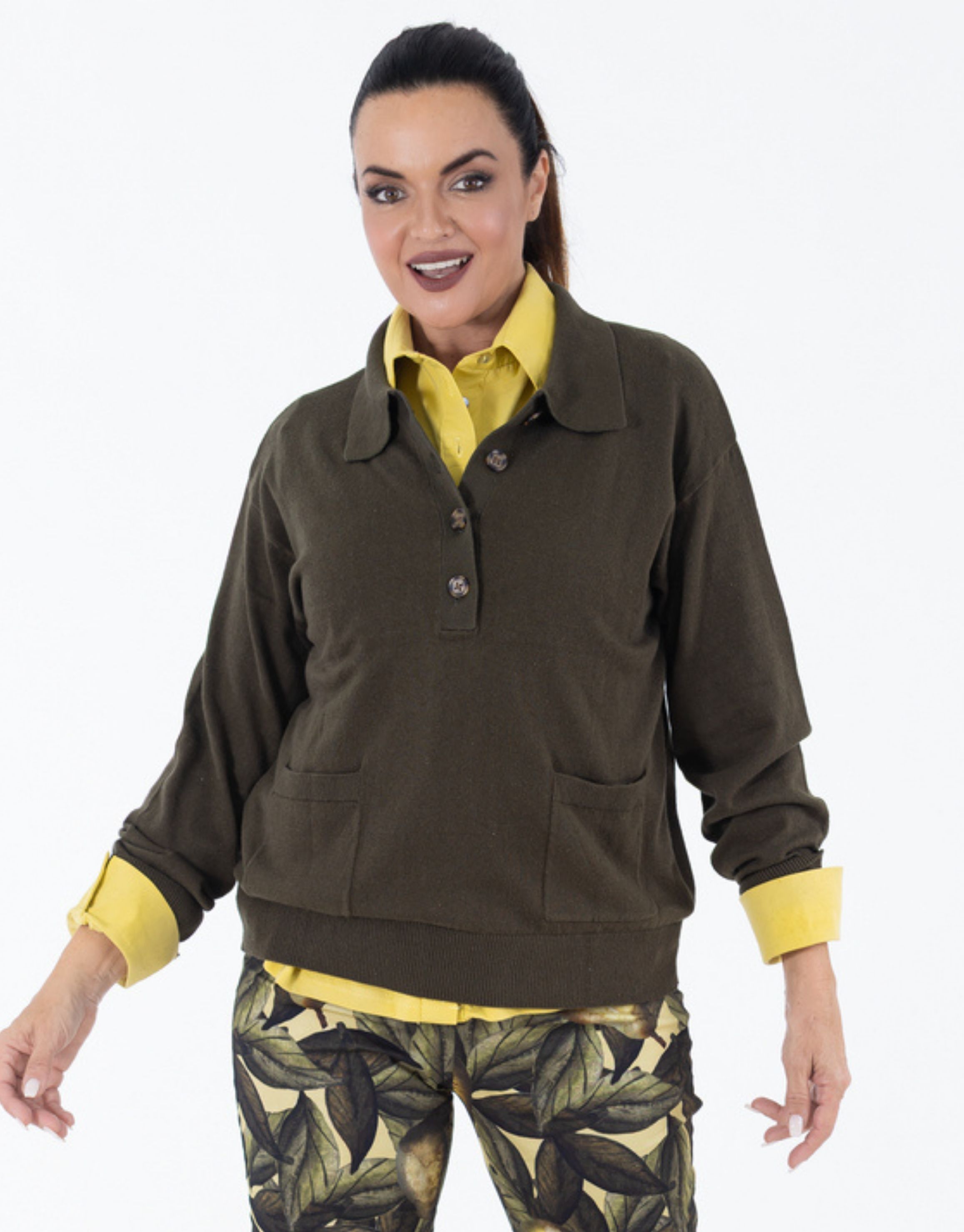 A polished knit top designed with a structured collar for a smart finish. The relaxed silhouette ensures comfort while maintaining a refined appearance. A versatile addition that transitions effortlessly across occasions.