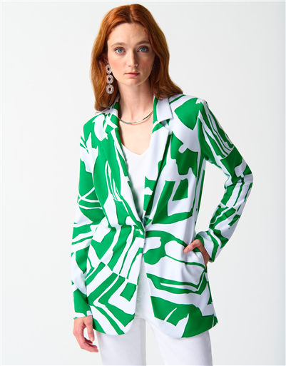 JOSEPH RIBKOFF GREEN VANILLA PALM PRINT BLAZER