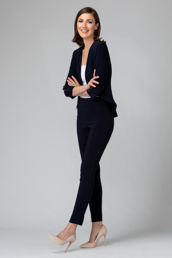 Masterfully designed by Joseph Ribkoff, these striking pants boast a clean silhouette and contour waistband to elevate your ensemble. Smart pleats and a cropped ankle add structure to your look. Pair these sleek trousers with a strappy heel or a sneaker—they're just that versatile!