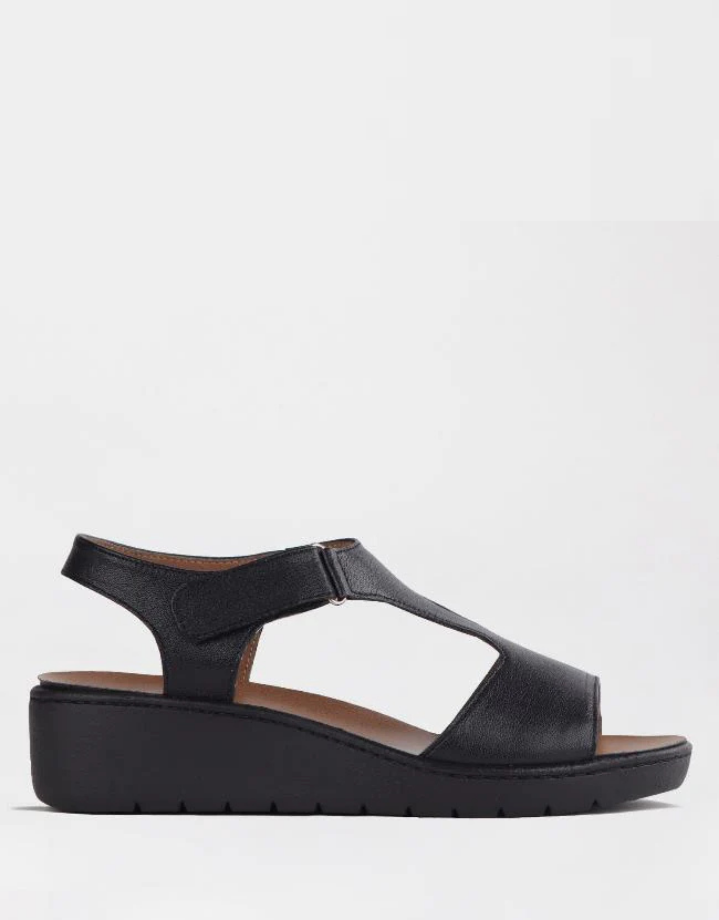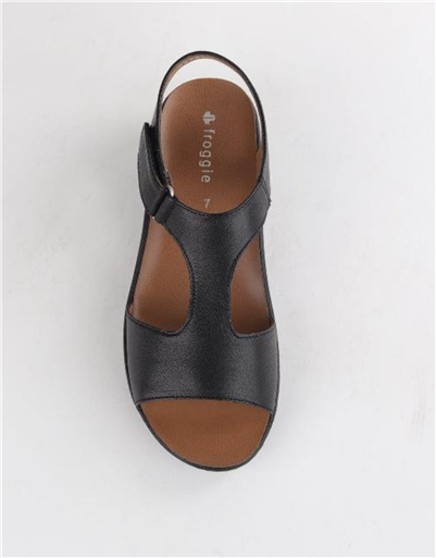 FROGGIE BLACK T-BAR WEDGE SANDAL
