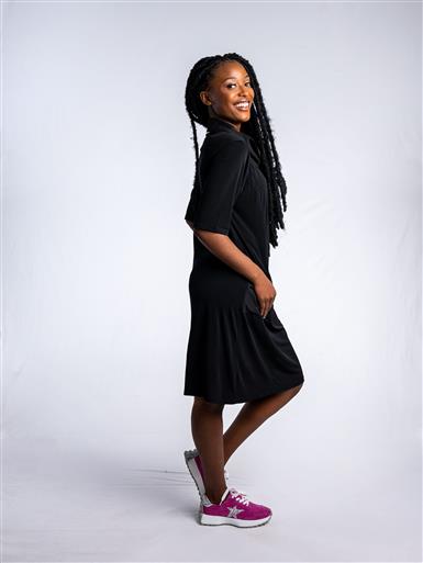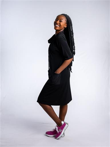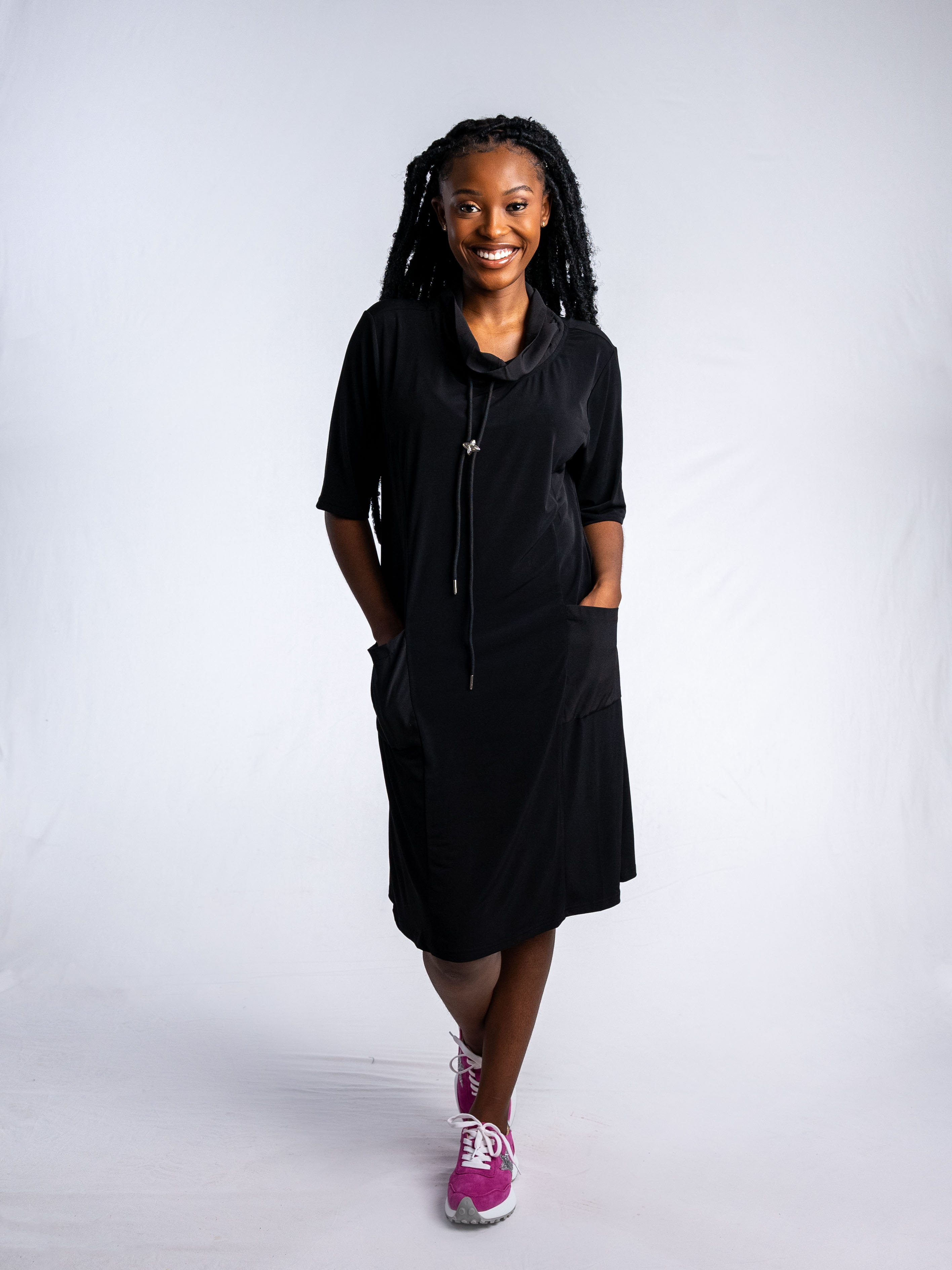 JOLIE BLACK COWEL NECK SELENA DRESS