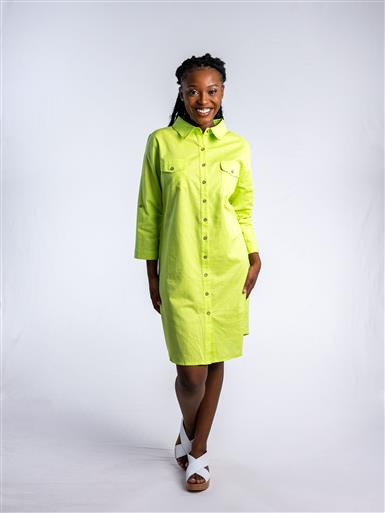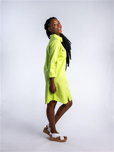JOLIE LIME ANNIE SHIRT BUTTON UP LINEN DRESS