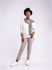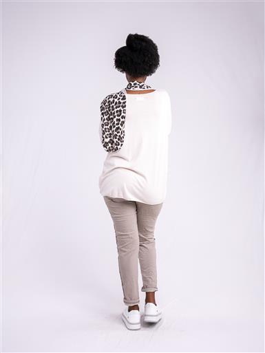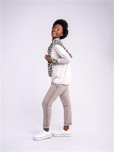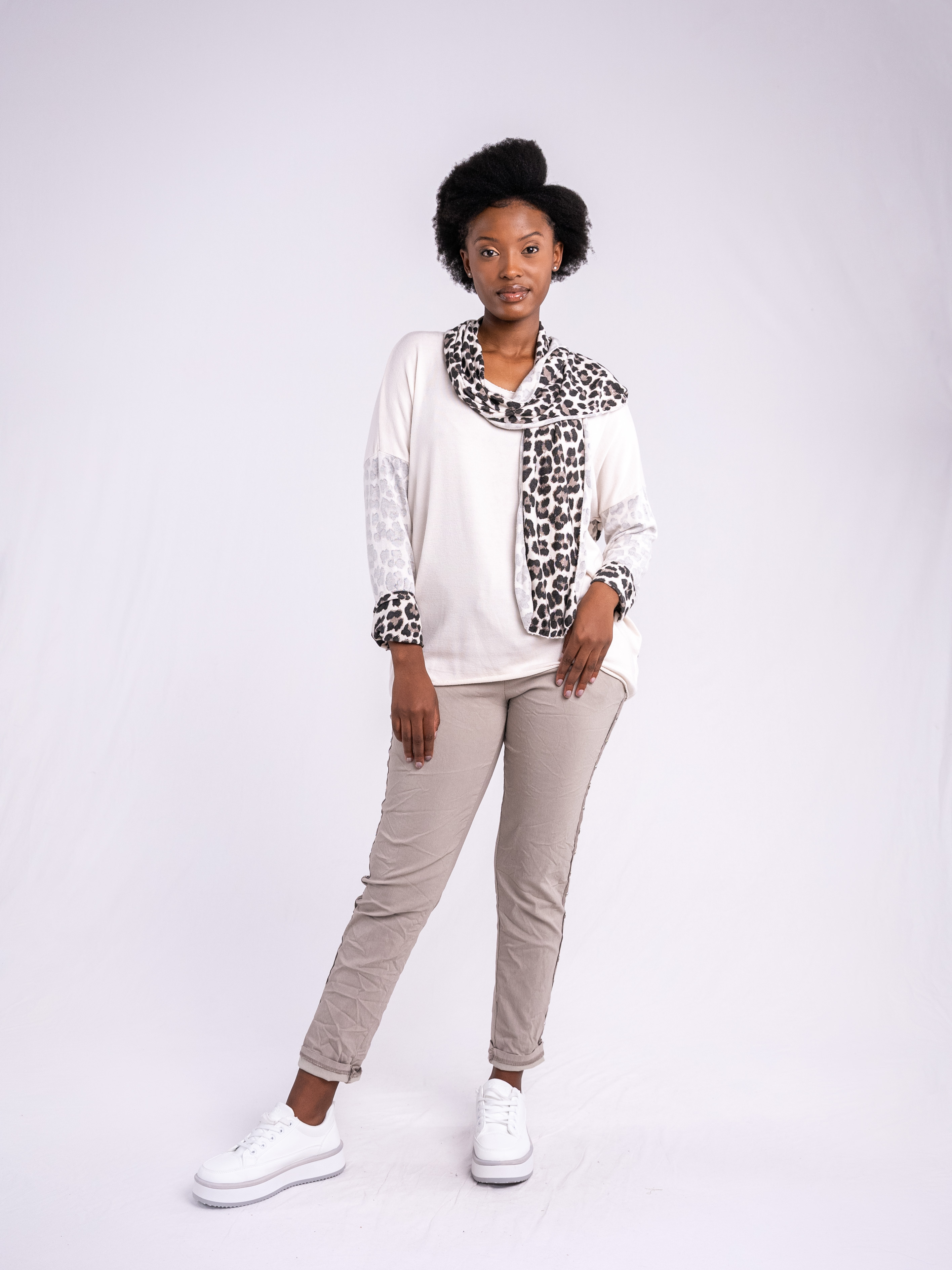 MADE IN ITALY CREAM KNIT TOP WITH ANIMAL PRINT SCARF