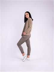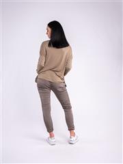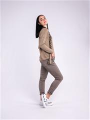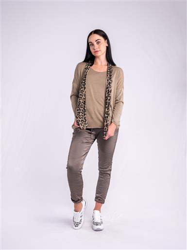 MADE IN ITALY BROWN KNIT TOP WITH ANIMAL PRINT SCARF